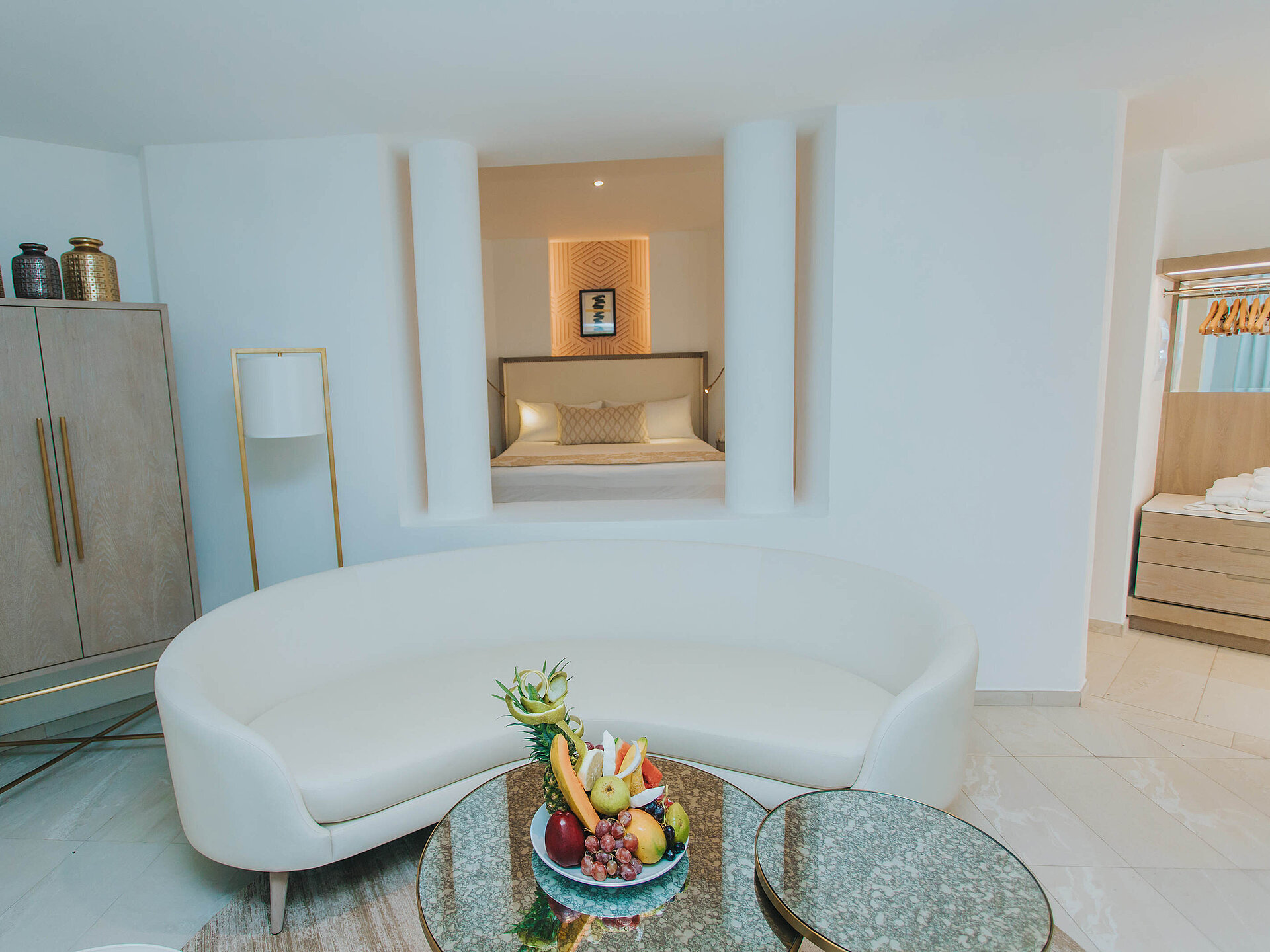 Die ebenfalls hell, modern und besonders komfortabel eingerichteten Suiten bieten auf 61 bis 70 qm viel Platz. Kombinierter Wohn- und Schlafraum mit Gartenblick. Besonderes Extra bei Buchung dieser Zimmerkategorie: Aufdeckservice, Whirlwanne, hochwertige Pflegeprodukte, Bademantel und -slipper, Strandtücher und -tasche im Zimmer, zweiter Fernseher sowie eine Espressomaschine.